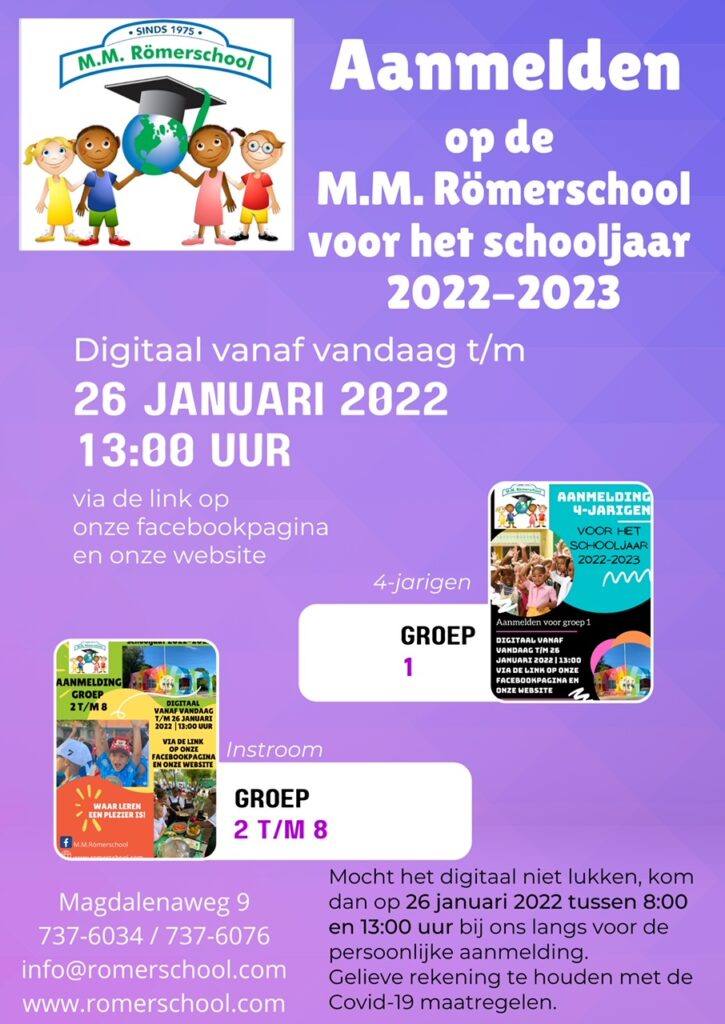 De aanmeldingen voor het schooljaar 2026-2027 starten in januari 2026.